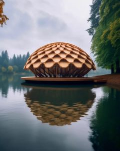 1. Round and Semi-Natural Structure: Resembling a Wooden Bubble This building is designed in the shape of a semi-round sphere